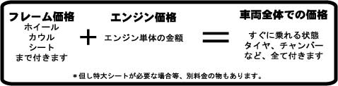 エンジン付きと書いてあるカートは車両全体での価格(すぐに走れる状態)を提示してあります。